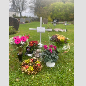 Igår var vi alla samlade på din alldeles egna dag. Vi besökte dig och la både blommor och en ängel på gräset. Det regnade och det var inte ett väder som du gillade. Stunden vid graven var fin och vi alla saknar dig. Det finns även en Pepsi Max från din bror.